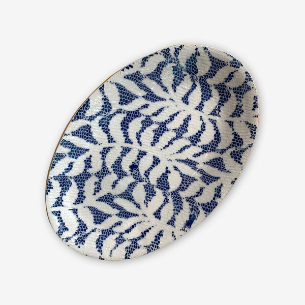 This spectacular and truly unique handmade Terrafirma Ceramics Petite Oval Platter, in the Fern pattern and Cobalt...