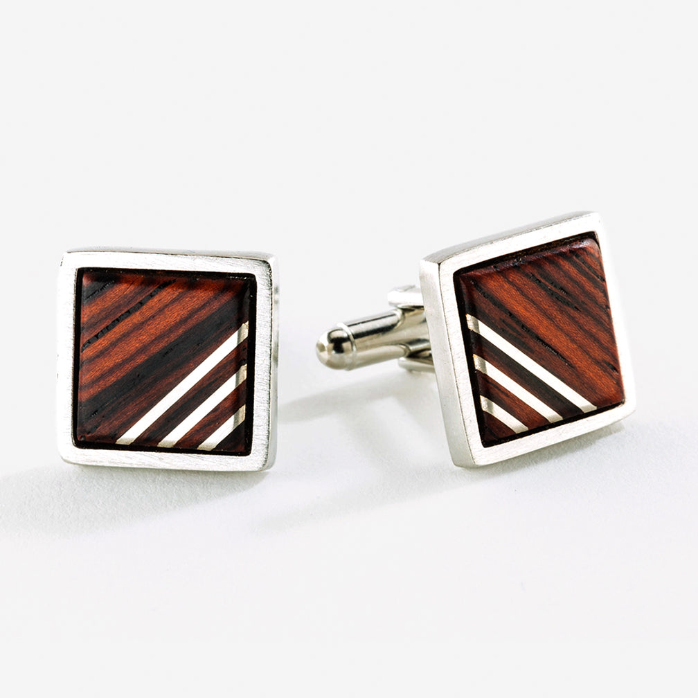 Davin & Kesler: Cuff Links: Argentium Silver Inlay Square Cocobolo, Diagonal