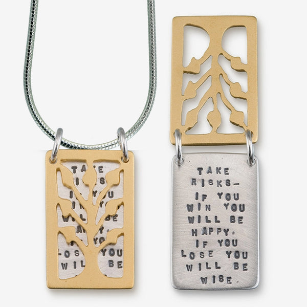 “With brave wings she flies.” Kathy Bransfield’s Quote Necklaces open to reveal hand-stamped quotes or...