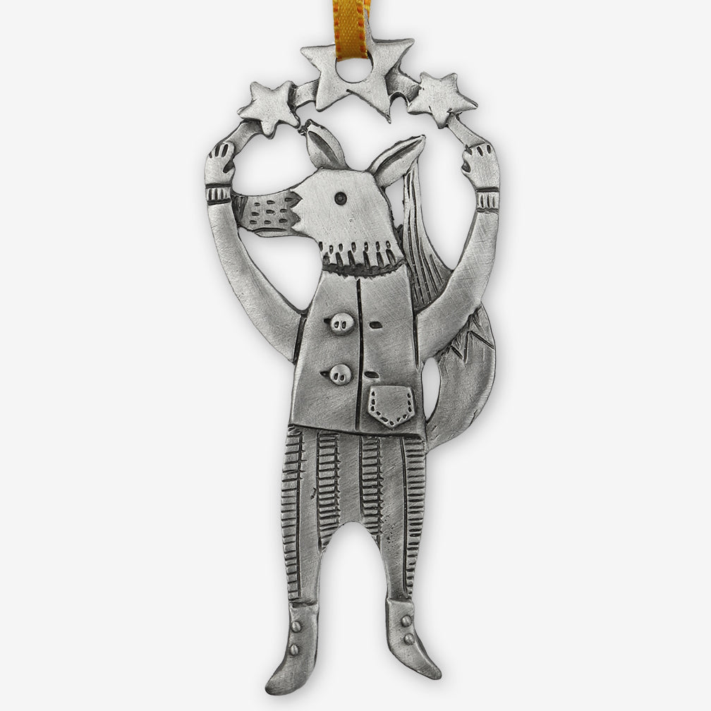 Leandra Drumm’s bas-relief pewter sculptures illustrate her wonderful world of whimsical figures, as well as her menagerie of fanciful animals. This Starry Fox ornament will add a bit of whimsy to your tree or home. Each sculpture is made from 100% lead-free pewter. Clean using a mild, non-abrasive cleanser when necessary.