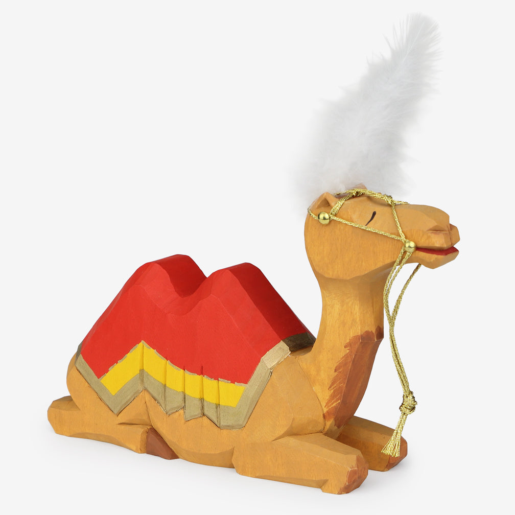 Lying Camel, Red Blanket & Plume: 5.5"h
