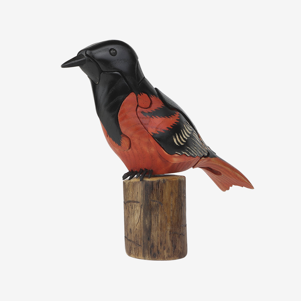 Oriole puzzle with a caterpillar hidden inside. Due to the handmade nature of the work, actual piece may differ slightly from photographs.
