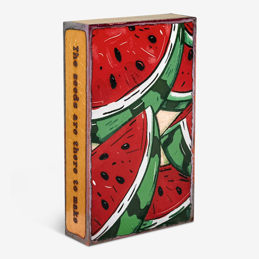 Every Spiritile has its own story that inspires, uplifts, and brings a hopeful connection to life. Handcrafted in Charleston, each is made with finely ground colored glass that is hand-painted, fused to copper in a kiln at 1500 degrees, and then wrapped around a wooden frame (see more here). Spiritiles can be hung on the wall or displayed freestanding, and withstand direct sun, humidity, and even outdoor conditions. Care and hanging information here.