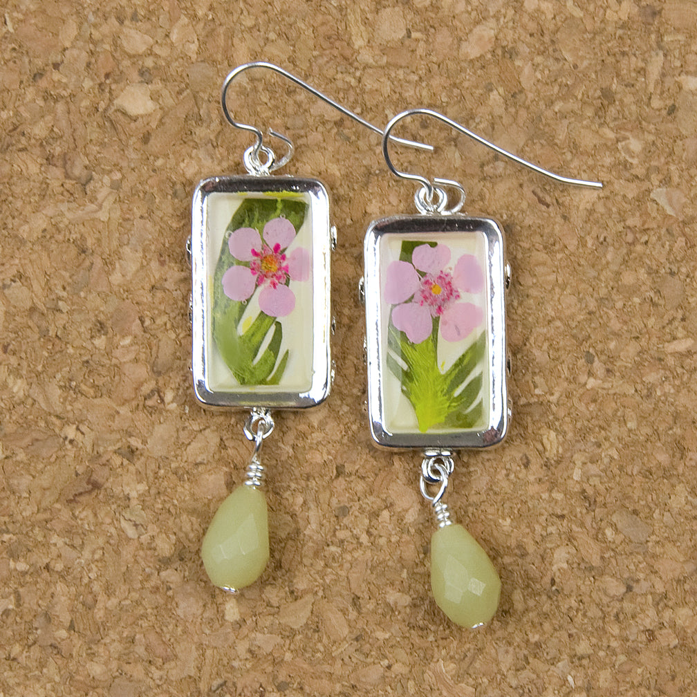 Since 2003, Shari Dixon has merged her graphic design training with a strong background in fashion to create a line of jewelry that is not only timeless and artistically well rounded, but stylish as well. A firm believer that women want to feel beautiful, feminine, and strong all at once, her motifs incorporate natural elements and mixed media such as pressed flowers, leaves, and herbs, immortalizing their fragile lives by sealing them in a poly resin, preserving the form, and adding a spectacular glazing effect.